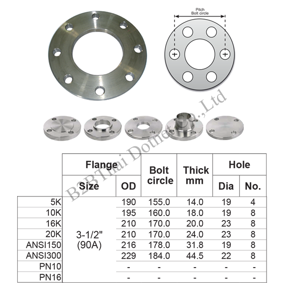 หน้าแปลน 3-1/2 นิ้ว ANSI300 90A
