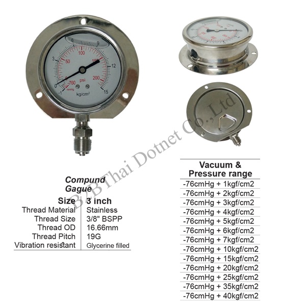 Compound gauge 3 นิ้ว ออกล่าง มีปีก 10kgf
