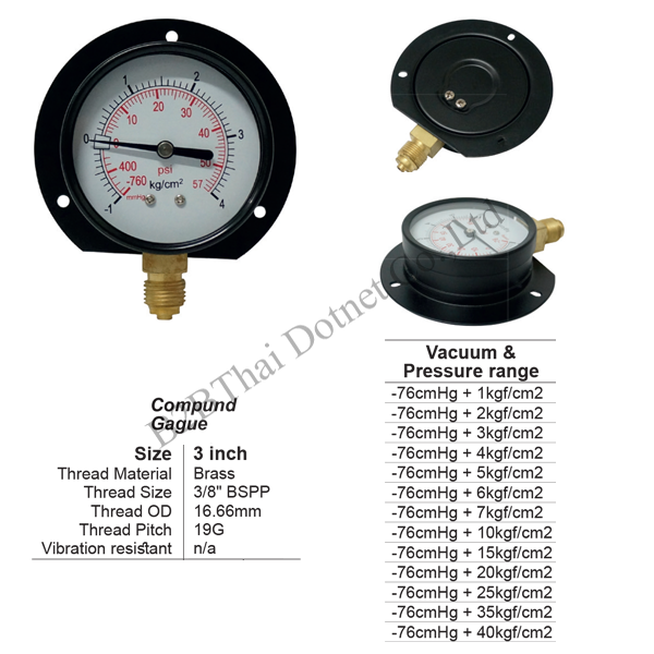 Compound gauge 3 นิ้ว ออกล่าง มีปีก 2 – 35kgf