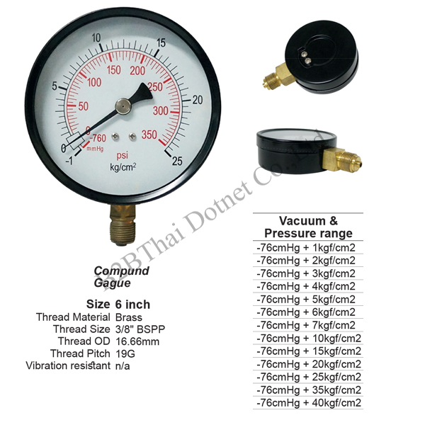 Compound gauge 6 นิ้ว ออกล่าง เหล็ก 25kgf