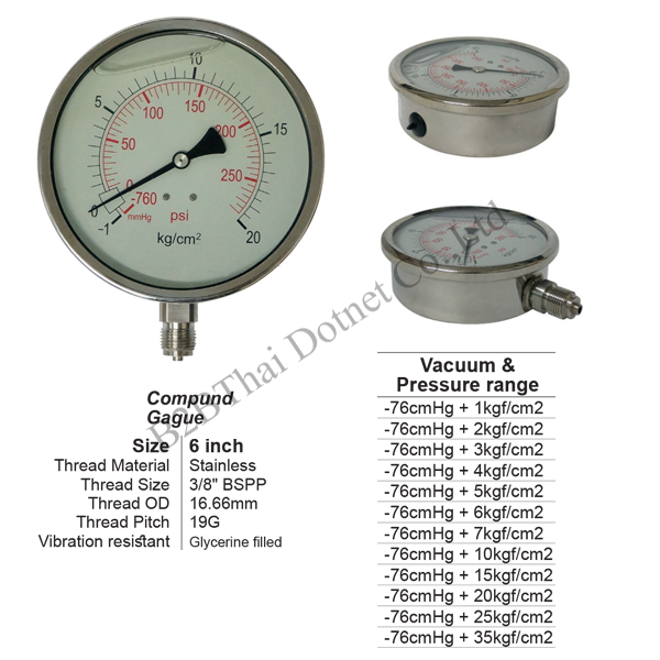 คอมปาวเกจ 6 นิ้ว ออกล่าง สแตนเลส 5kgf