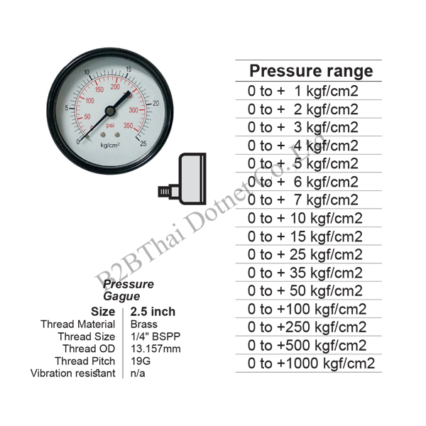 Pressure Gauge 2.5 นิ้ว ออกหลัง ด้านล่าง เหล็ก 50kgf