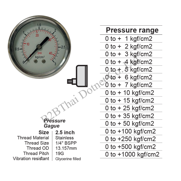 เกจวัดแรงดัน 2.5 นิ้ว ออกหลัง ด้านล่าง สแตนเลส 3kgf