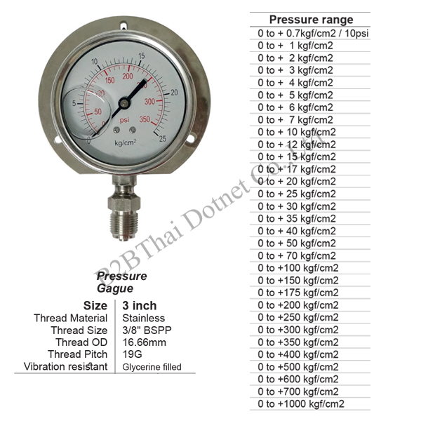 เกจวัดแรงดัน 3 นิ้ว ออกล่าง มีปีก สแตนเลส 7kgf